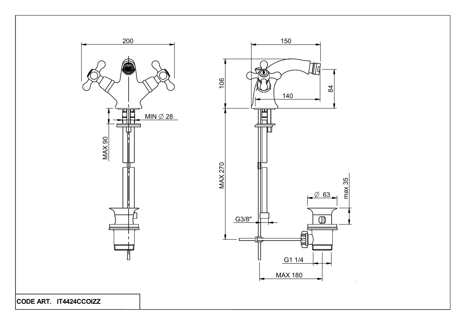 Treemme Romantica Смеситель для биде, с донным клапаном, цвет: chrome IT3624CCPVZZ и другие сантехнические изделия бренда характеризует надежность, высокое качество и продолжительный срок службы. Изделие в стилистике минимализм впечатляюще будет смотреться в различных цветовых решениях помещения.