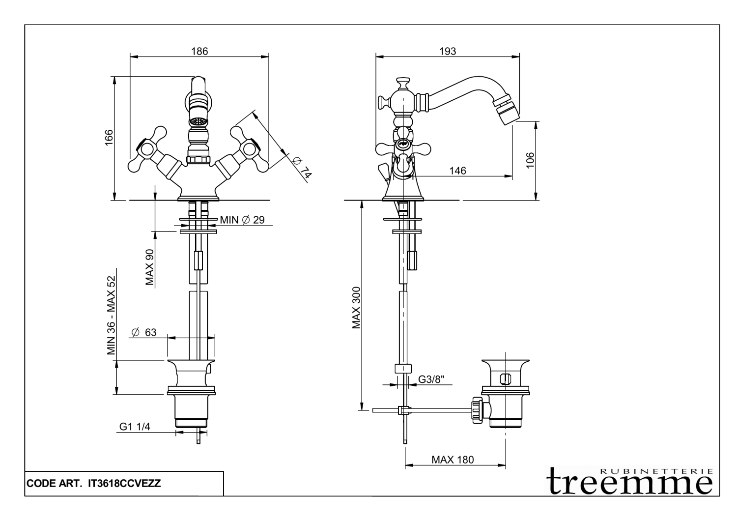 Treemme Romantica Смеситель для биде, с донным клапаном, цвет: chrome IT3629CCPVZZ и другие сантехнические изделия бренда характеризует надежность, высокое качество и продолжительный срок службы. Изделие в стилистике минимализм впечатляюще будет смотреться в различных цветовых решениях помещения.