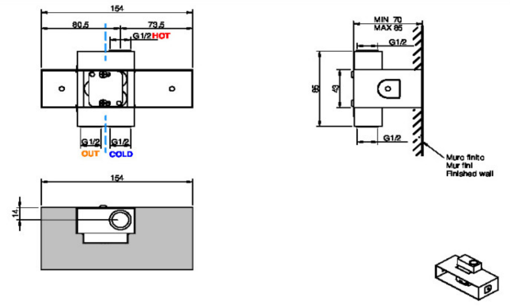 Treemme Встраиваемая часть смесителя для душа/ванны RWIT2808ZZ98 и другие сантехнические изделия бренда характеризует надежность, высокое качество и продолжительный срок службы. Изделие в стилистике минимализм впечатляюще будет смотреться в различных цветовых решениях помещения.