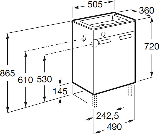 Roca Debba Тумба под раковину, напольная 50х36х86,5h см, 2 створки, ножки, цвет: венге ZRU9302709 и другие сантехнические изделия бренда характеризует надежность, высокое качество и продолжительный срок службы. Изделие в стилистике минимализм впечатляюще будет смотреться в различных цветовых решениях помещения.