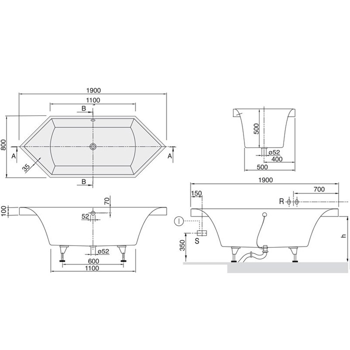 Villeroy & Boch Squaro Ванна встраиваемая, 190х80х50 см, шестиугольная, цвет: белый UBQ190SQR6V01 и другие сантехнические изделия бренда характеризует надежность, высокое качество и продолжительный срок службы. Изделие в стилистике hi-tech впечатляюще будет смотреться в различных цветовых решениях помещения.