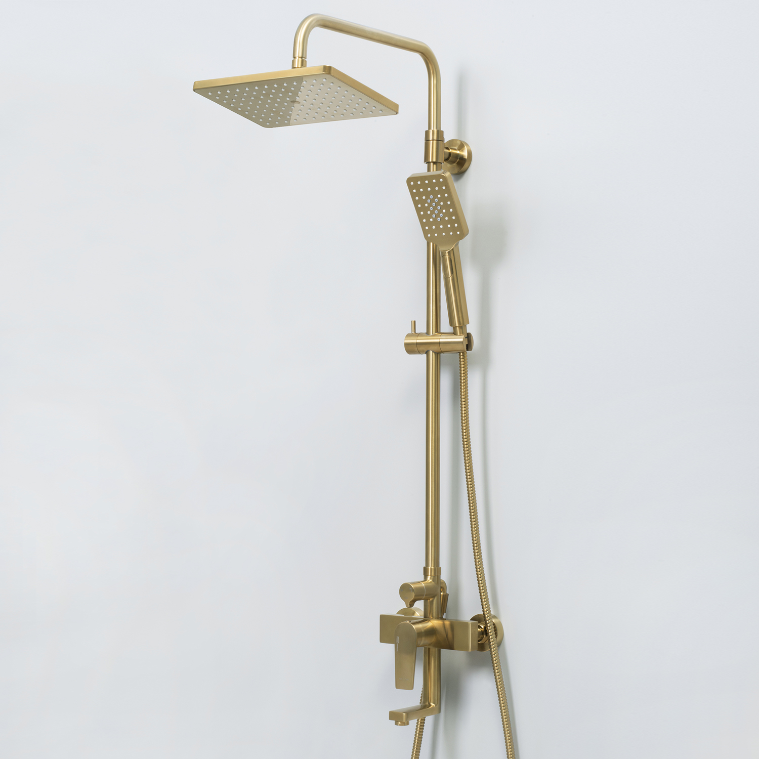 Wasserkraft Aisch Душевая стойка: смеситель, ручной душ 3 вида струи, верхний душ, цвет: золото A15501 и другие сантехнические изделия бренда характеризует надежность, высокое качество и продолжительный срок службы. Изделие в стилистике минимализм впечатляюще будет смотреться в различных цветовых решениях помещения.