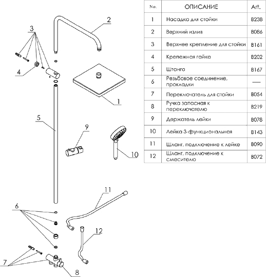 Wasserkraft Душевая стойка: смеситель, ручной душ 3 вида струи, шланг, верхний душ, цвет: хром A017 и другие сантехнические изделия бренда характеризует надежность, высокое качество и продолжительный срок службы. Изделие в стилистике неоклассика впечатляюще будет смотреться в различных цветовых решениях помещения.