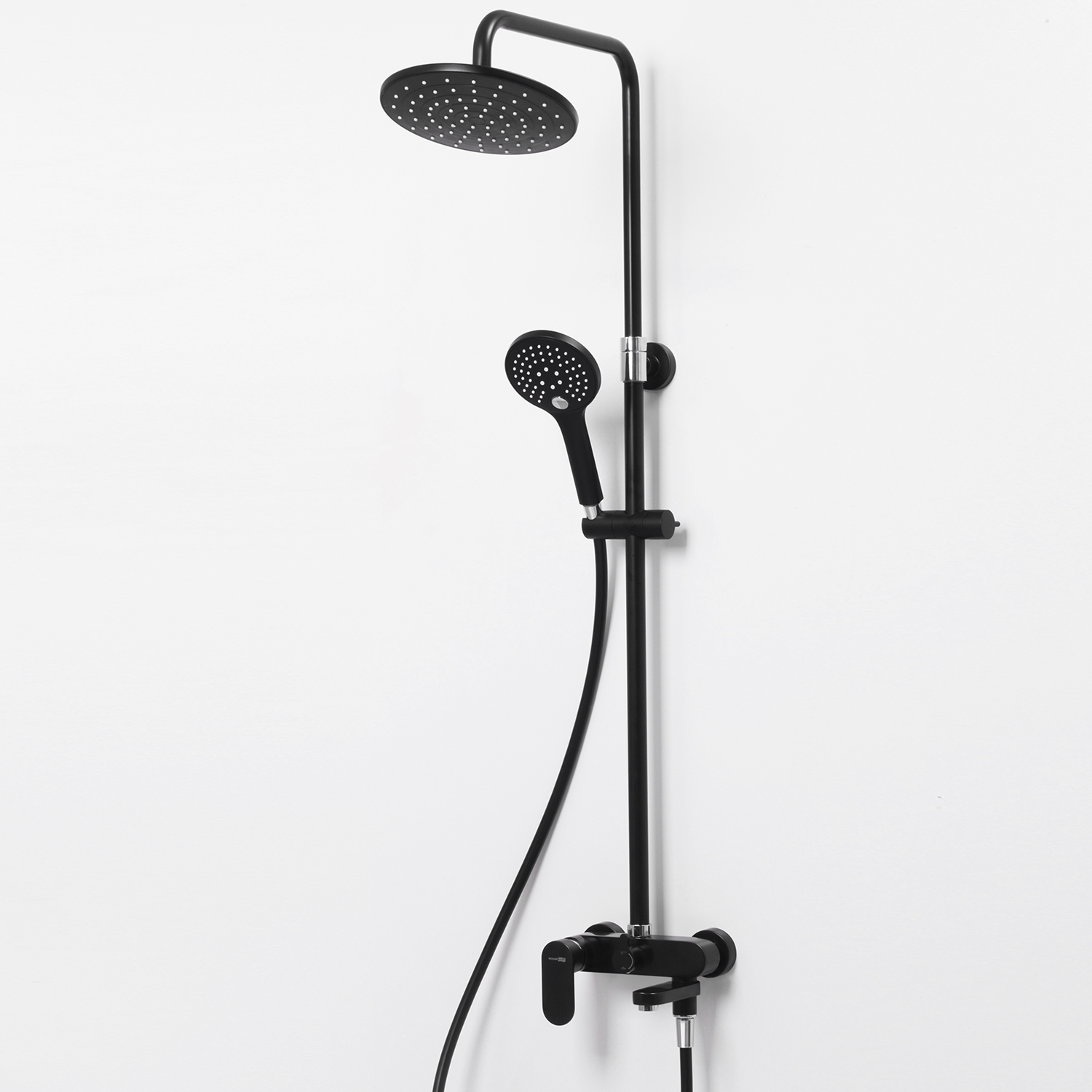 Wasserkraft Elbe Душевая стойка: смеситель, ручной душ 3 вида струи, верхний душ, цвет: черный A17401 и другие сантехнические изделия бренда характеризует надежность, высокое качество и продолжительный срок службы. Изделие в стилистике минимализм впечатляюще будет смотреться в различных цветовых решениях помещения.