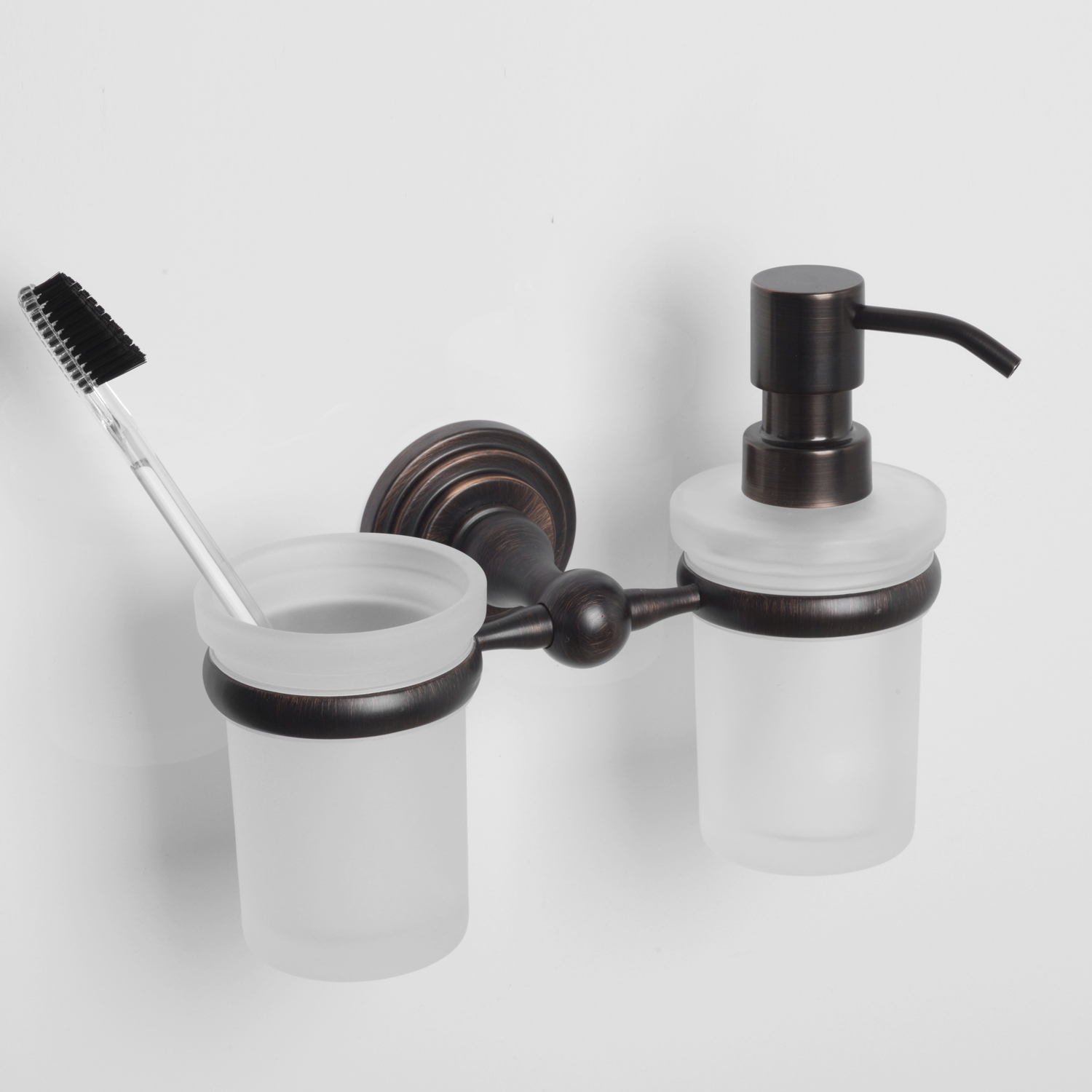 Wasserkraft Isar Стакан и дозатор с держателем подвесные, стеклянные матовые, цвет: темная бронза K-7389 и другие сантехнические изделия бренда характеризует надежность, высокое качество и продолжительный срок службы. Изделие в стилистике прованс впечатляюще будет смотреться в различных цветовых решениях помещения.