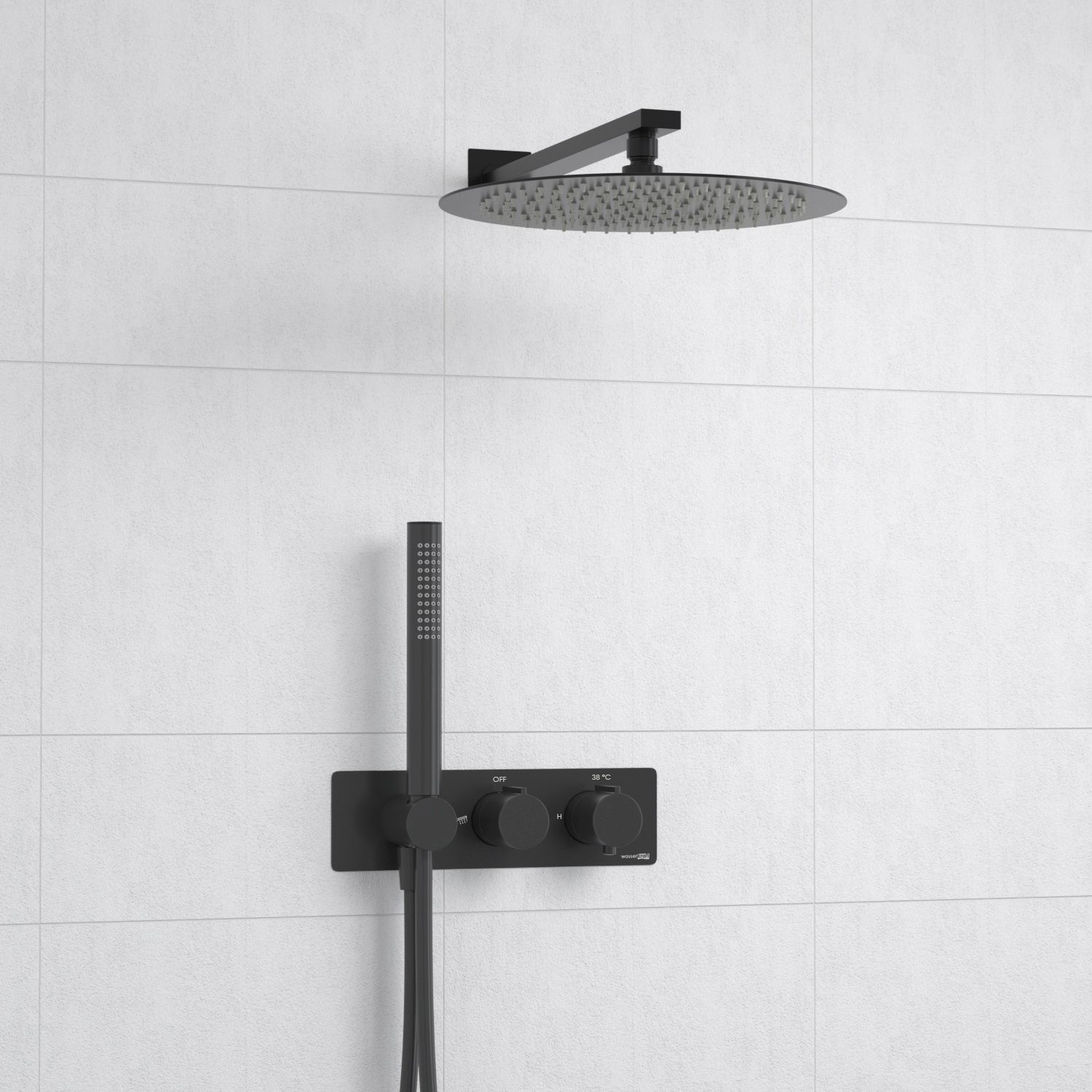Wasserkraft Elbe Смеситель для душа: термостат, верхний и ручной душ, излив, цвет: черный матовый A16160 Thermo и другие сантехнические изделия бренда характеризует надежность, высокое качество и продолжительный срок службы. Изделие в стилистике минимализм впечатляюще будет смотреться в различных цветовых решениях помещения.