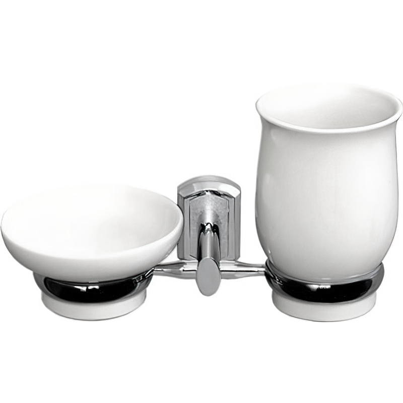 Wasserkraft Мыльница со стаканом, керамическая чаша, подвесная, цвет: хром K-24126 и другие сантехнические изделия бренда характеризует надежность, высокое качество и продолжительный срок службы. Изделие в стилистике арт-деко впечатляюще будет смотреться в различных цветовых решениях помещения.
