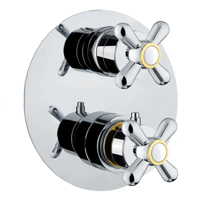 Webert Armony Смеситель для душа, термостатический, цвет: хром/золото AM970901017 и другие сантехнические изделия бренда характеризует надежность, высокое качество и продолжительный срок службы. Изделие в стилистике английская классика впечатляюще будет смотреться в различных цветовых решениях помещения.