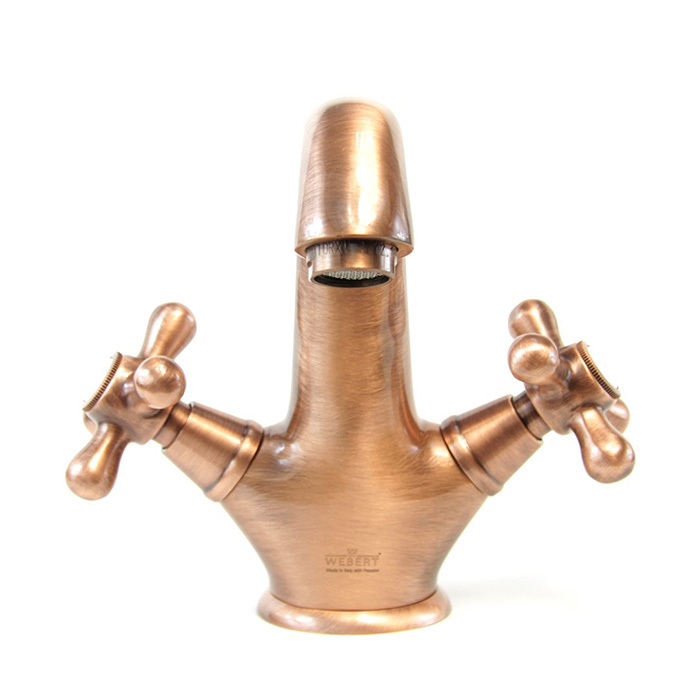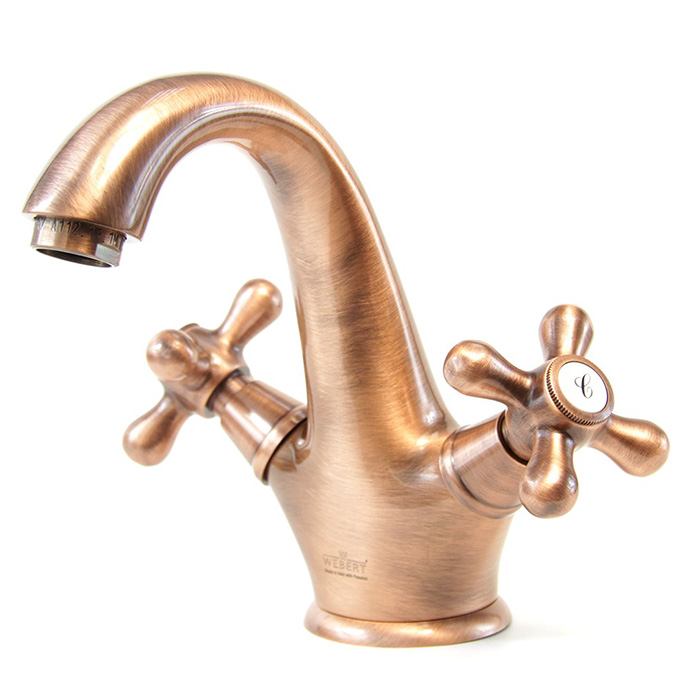 Webert Armony Смеситель для раковины, с донным клапаном, цвет: медь AM700102060 и другие сантехнические изделия бренда характеризует надежность, высокое качество и продолжительный срок службы. Изделие в стилистике английская классика впечатляюще будет смотреться в различных цветовых решениях помещения.