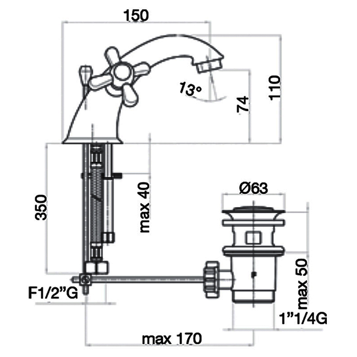 Webert Armony Смеситель для раковины, с донным клапаном, цвет: золото AM700108010 и другие сантехнические изделия бренда характеризует надежность, высокое качество и продолжительный срок службы. Изделие в стилистике английская классика впечатляюще будет смотреться в различных цветовых решениях помещения.