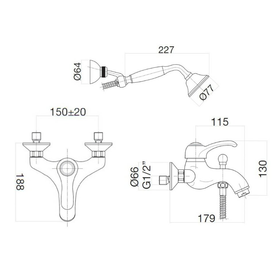 Webert Aurora Смеситель для ванны, настенный, цвет: бронза AU850101065 и другие сантехнические изделия бренда характеризует надежность, высокое качество и продолжительный срок службы. Изделие в стилистике прованс впечатляюще будет смотреться в различных цветовых решениях помещения.