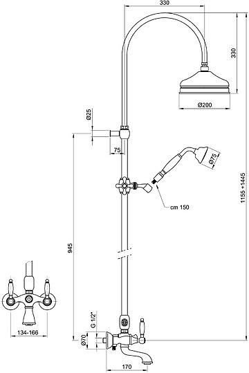 Webert Dorian Душевая стойка с верхним душем 43х20х115,5h см, цвет: золото DO721208010 и другие сантехнические изделия бренда характеризует надежность, высокое качество и продолжительный срок службы. Изделие в стилистике прованс впечатляюще будет смотреться в различных цветовых решениях помещения.