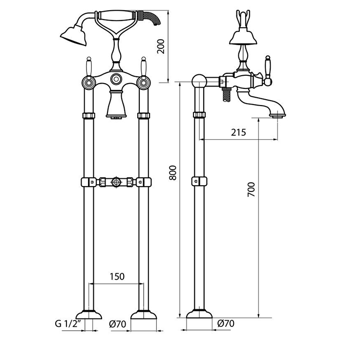 Webert Dorian Смеситель для ванны, цвет: золото/белый DO720801010 и другие сантехнические изделия бренда характеризует надежность, высокое качество и продолжительный срок службы. Изделие в стилистике прованс впечатляюще будет смотреться в различных цветовых решениях помещения.
