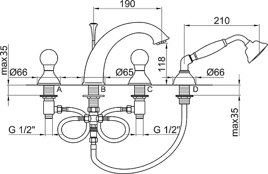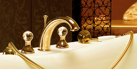 Webert Karenina Смеситель на борт ванны, цвет: золото KA730101010 и другие сантехнические изделия бренда характеризует надежность, высокое качество и продолжительный срок службы. Изделие в стилистике английская классика впечатляюще будет смотреться в различных цветовых решениях помещения.