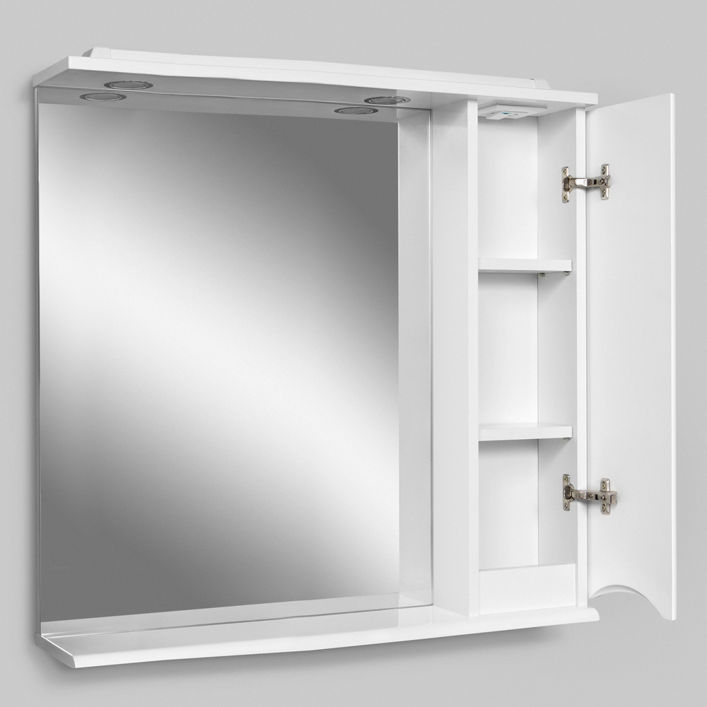 Am.Pm Like Зеркальный шкаф с подсветкой 80х15х78h см, 2 полки, розетка, правый, цвет: белый глянец M80MPR0801WG и другие сантехнические изделия бренда характеризует надежность, высокое качество и продолжительный срок службы. Изделие в стилистике неоклассика впечатляюще будет смотреться в различных цветовых решениях помещения.